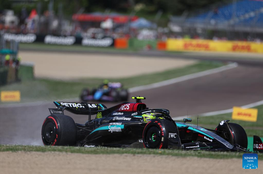 Mercedes' British driver Lewis Hamilton competes during the qualifying session of the Formula One Emilia Romagna Grand Prix held at the Autodromo Internazionale Enzo e Dino Ferrari race track in Imola, Italy, May 18, 2024. (Xinhua/Li Jing)