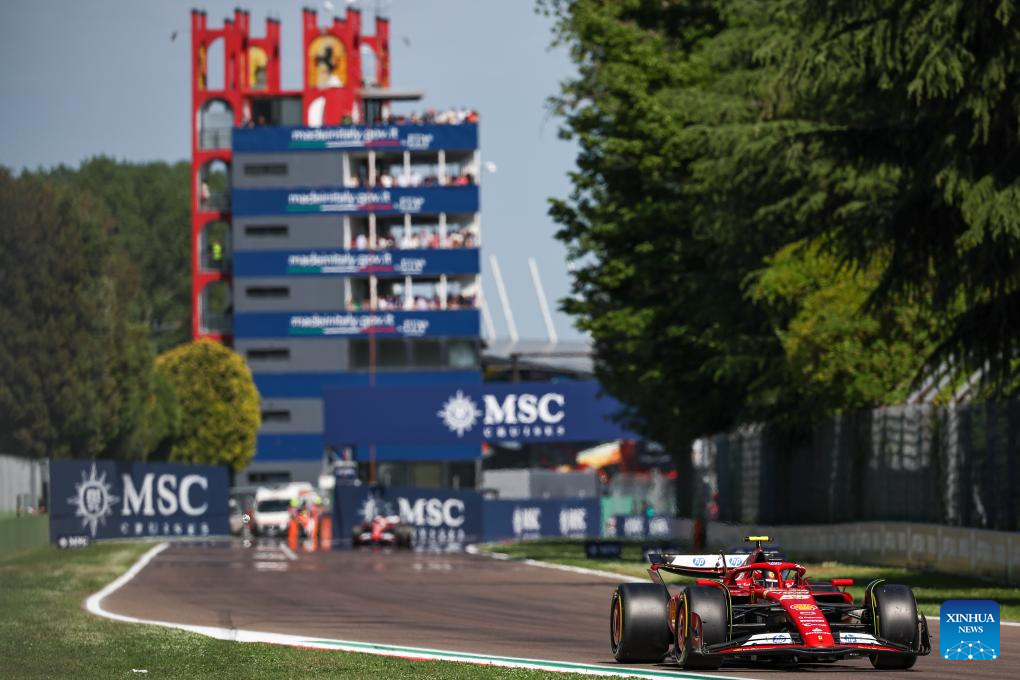 Ferrari's Spanish driver Carlos Sainz competes during the qualifying session of the Formula One Emilia Romagna Grand Prix held at the Autodromo Internazionale Enzo e Dino Ferrari race track in Imola, Italy, May 18, 2024. (Photo by Qian Jun/Xinhua)