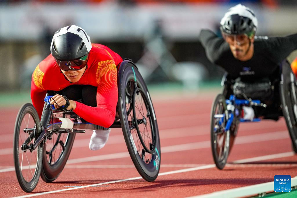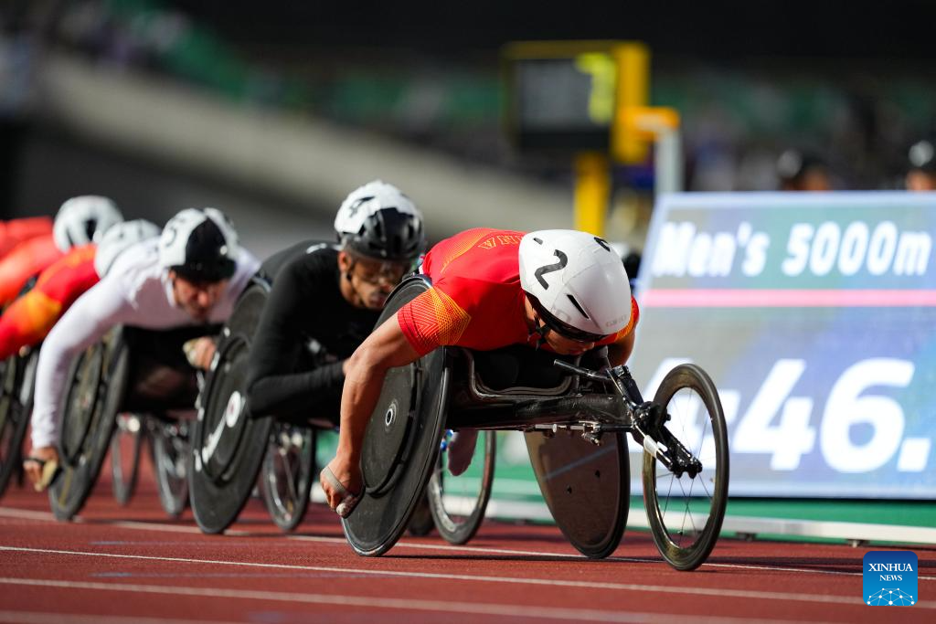 Ma Zhuo (1st R) of China competes during men's 5000m T54 final at the Para Athletics World Championships held in Kobe, Japan, on May 18, 2024. (Xinhua/Zhang Xiaoyu)