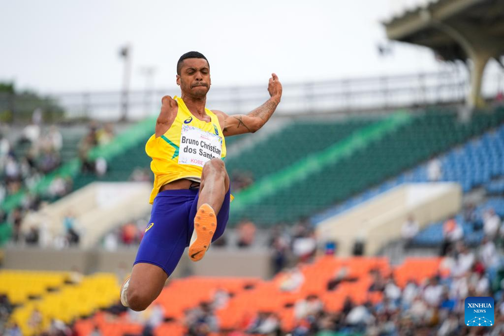 Bruno Christian dos Santos of Brazil competes during the men's long jump T47 final at the Para Athletics World Championships held in Kobe, Japan, on May 18, 2024. (Xinhua/Zhang Xiaoyu)