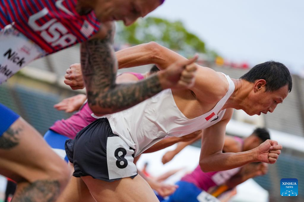Zhou Peng of China competes during the men's 100m T38 final at the Para Athletics World Championships held in Kobe, Japan, on May 18, 2024. (Xinhua/Zhang Xiaoyu)