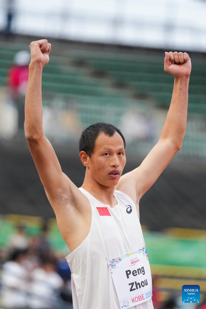 Zhou Peng of China reacts before the men's 100m T38 final at the Para Athletics World Championships held in Kobe, Japan, on May 18, 2024. (Xinhua/Zhang Xiaoyu)