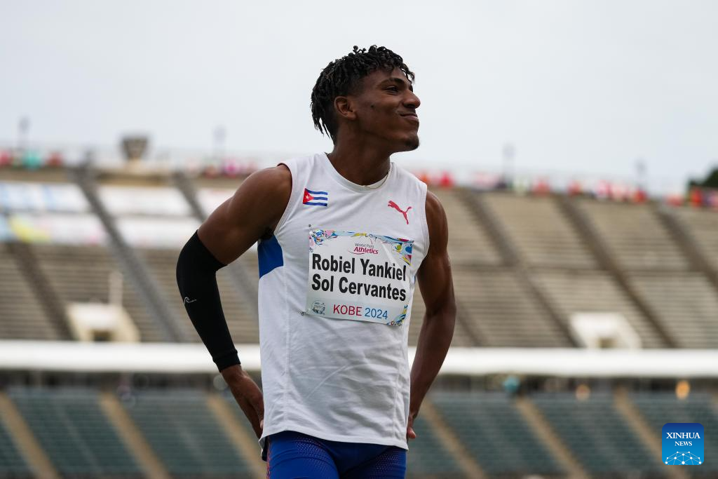 Robiel Yankiel Sol Cervantes of Cuba reacts during the men's long jump T47 final at the Para Athletics World Championships held in Kobe, Japan, on May 18, 2024. (Xinhua/Zhang Xiaoyu)