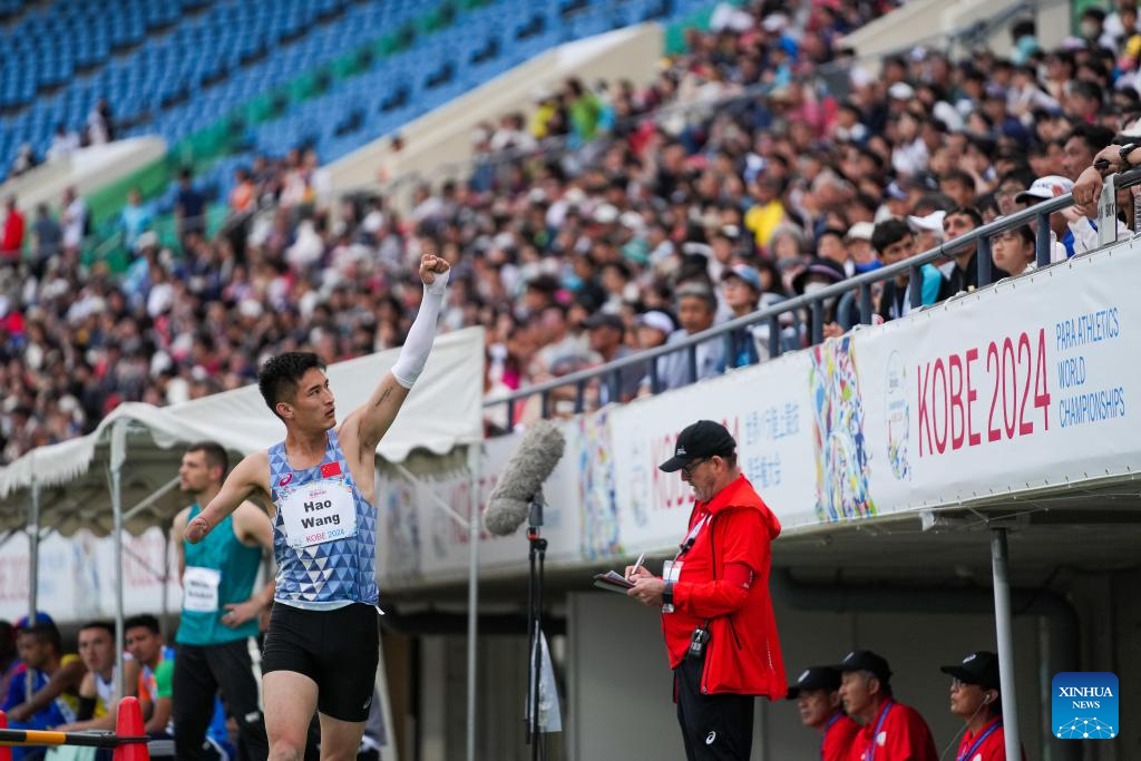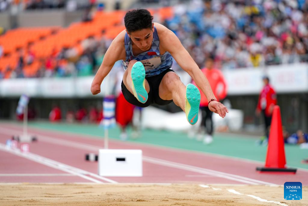 Wang Hao of China competes during men's long jump T47 final at the Para Athletics World Championships held in Kobe, Japan, on May 18, 2024. (Xinhua/Zhang Xiaoyu)