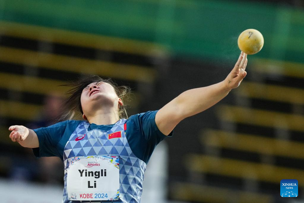 Li Yingli of China competes during women's shot put F37 final at the Para Athletics World Championships held in Kobe, Japan, on May 18, 2024. (Xinhua/Zhang Xiaoyu)
