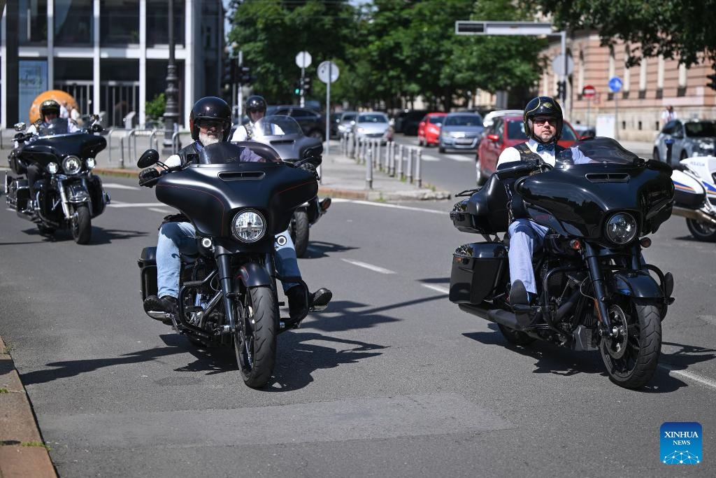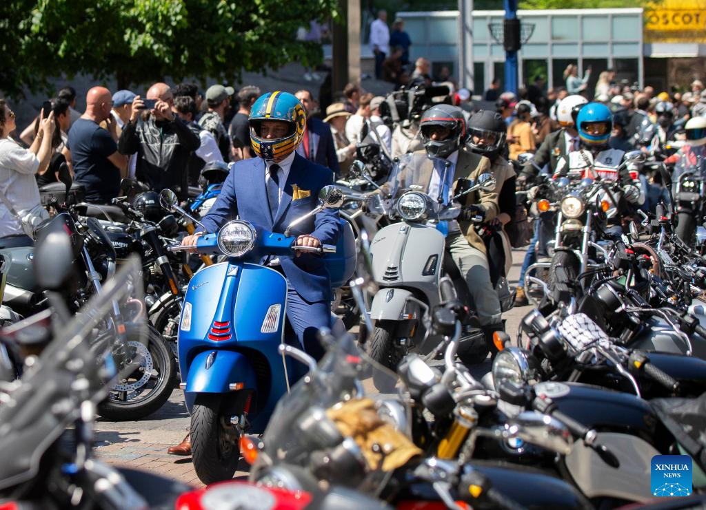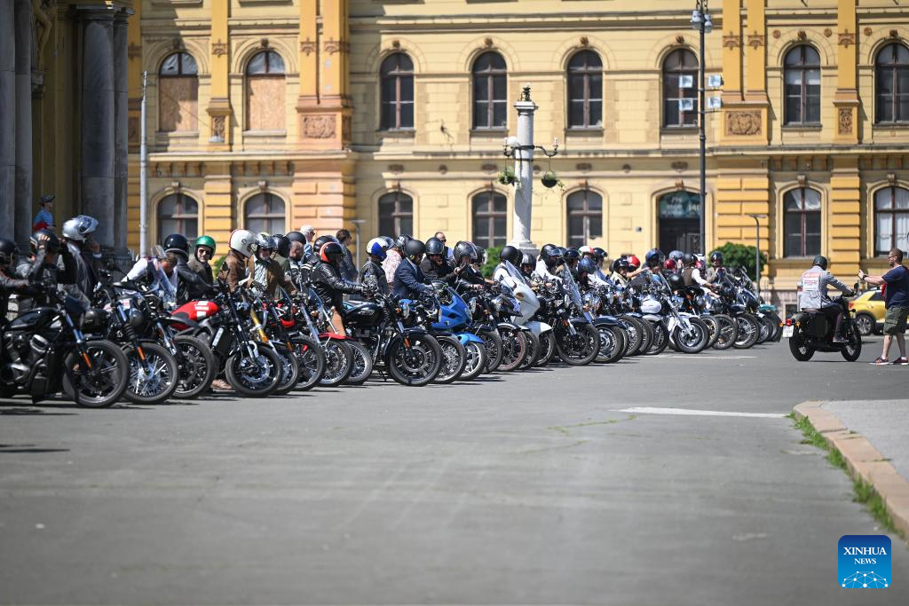 Riders take part in the Distinguished Gentleman's Ride event in Zagreb, Croatia on May 19, 2024. (Neva Zganec/PIXSELL via Xinhua)