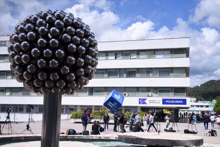 Media staff members work outside a hospital in which Slovak Prime Minister Robert Fico receives medical treatment, in Banska Bystrica, Slovakia, on May 16, 2024. (Xinhua/He Canling)