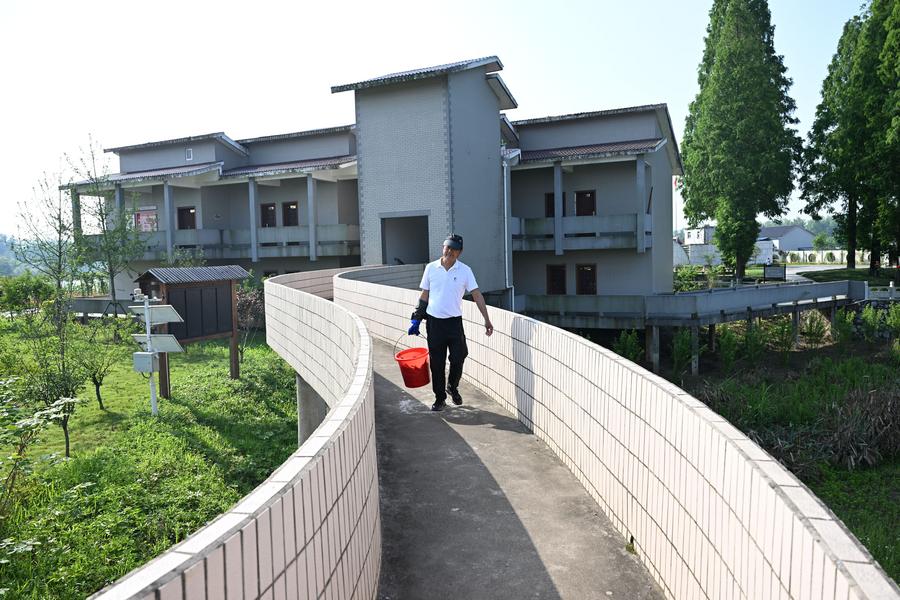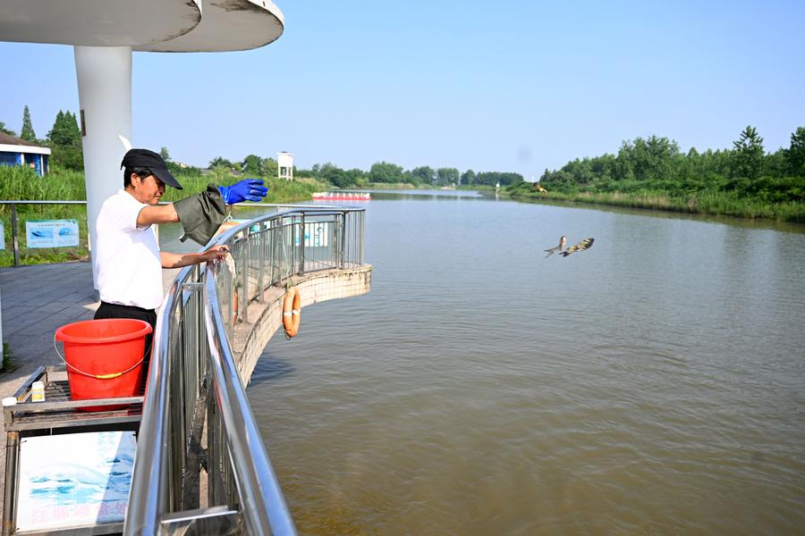 An aerial drone photo taken on May 10, 2024 shows Zhang Bajin feeding Yangtze finless porpoises at a Yangtze finless porpoise relocation conservation base in Tongling River Dolphin National Nature Reserve in Tongling, east China's Anhui Province. (Photo by Chen Lei/Xinhua)A Yangtze finless porpoise is seen at a Yangtze finless porpoise relocation conservation base in Tongling River Dolphin National Nature Reserve in Tongling, east China's Anhui Province, May 10, 2024. (Xinhua/Huang Bohan)Zhang Bajin walks towards the river bank to feed Yangtze finless porpoises at a Yangtze finless porpoise relocation conservation base in Tongling River Dolphin National Nature Reserve in Tongling, east China's Anhui Province, May 10, 2024. (Xinhua/Huang Bohan)Zhang Bajin prepares fish to feed Yangtze finless porpoises at a Yangtze finless porpoise relocation conservation base in Tongling River Dolphin National Nature Reserve in Tongling, east China's Anhui Province, May 10, 2024. (Xinhua/Huang Bohan)Zhang Bajin feeds Yangtze finless porpoises at a Yangtze finless porpoise relocation conservation base in Tongling River Dolphin National Nature Reserve in Tongling, east China's Anhui Province, May 10, 2024. (Xinhua/Huang Bohan)An aerial drone photo taken on May 10, 2024 shows a Yangtze finless porpoise relocation conservation base in Tongling River Dolphin National Nature Reserve in Tongling, east China's Anhui Province. (Photo by Chen Lei/Xinhua)■