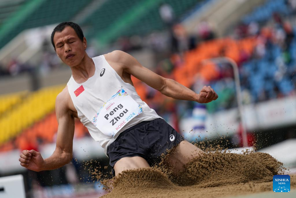 Zhou Peng of China competes during the Men's Long Jump T38 Final at the Para Athletics World Championships held in Kobe, Japan, on May 22, 2024. (Xinhua/Zhang Xiaoyu)