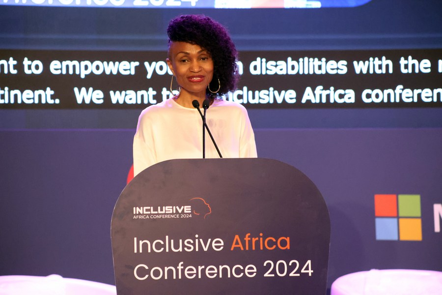 InABLE Chief Executive Officer Irene Mbari addresses delegates at Inclusive Africa Conference 2024 in Nairobi, capital of Kenya, May 14, 2024. (Photo by John Okoyo/Xinhua)