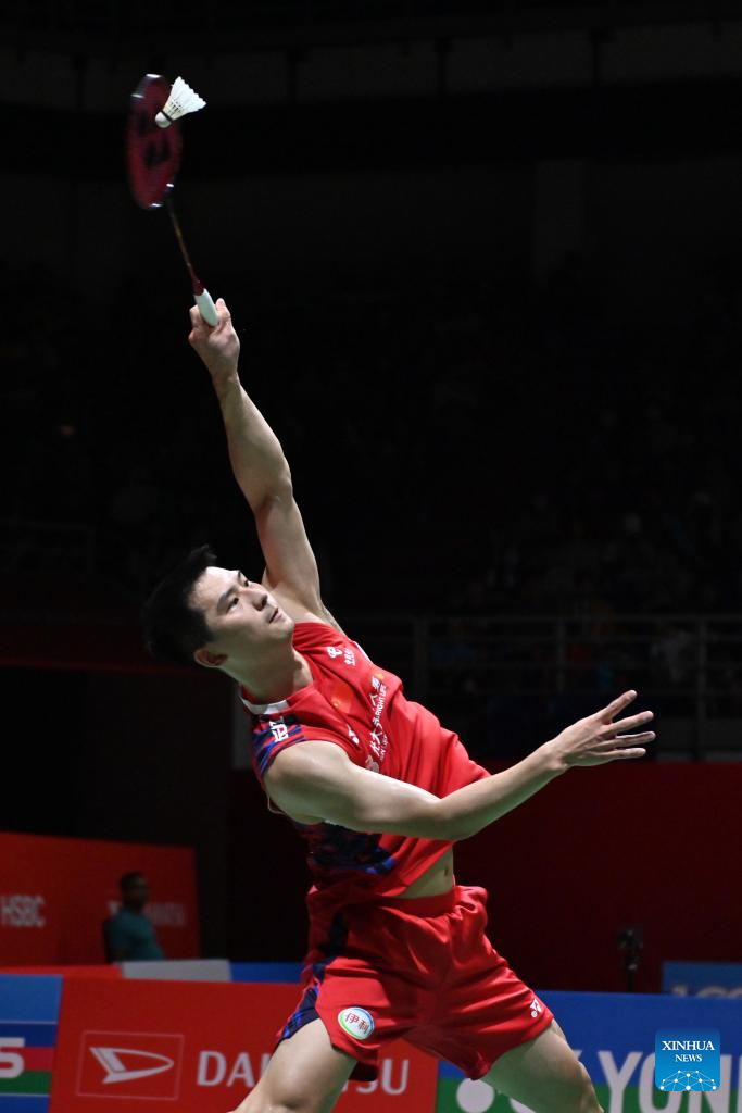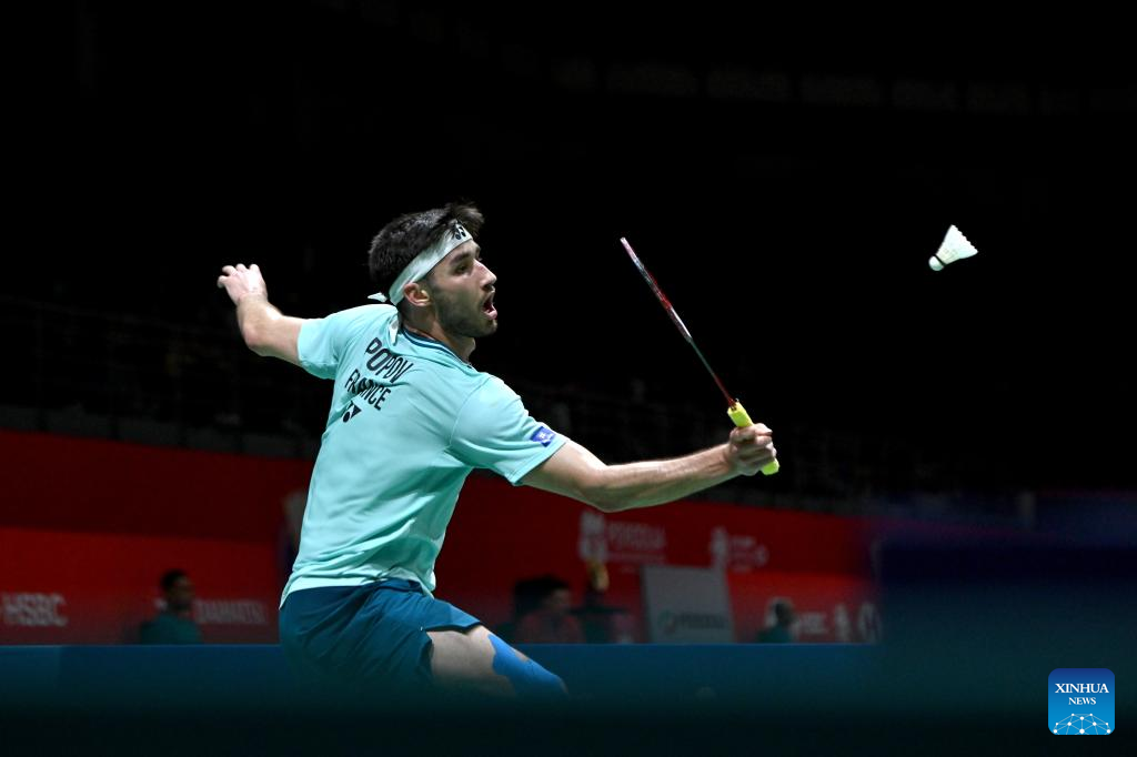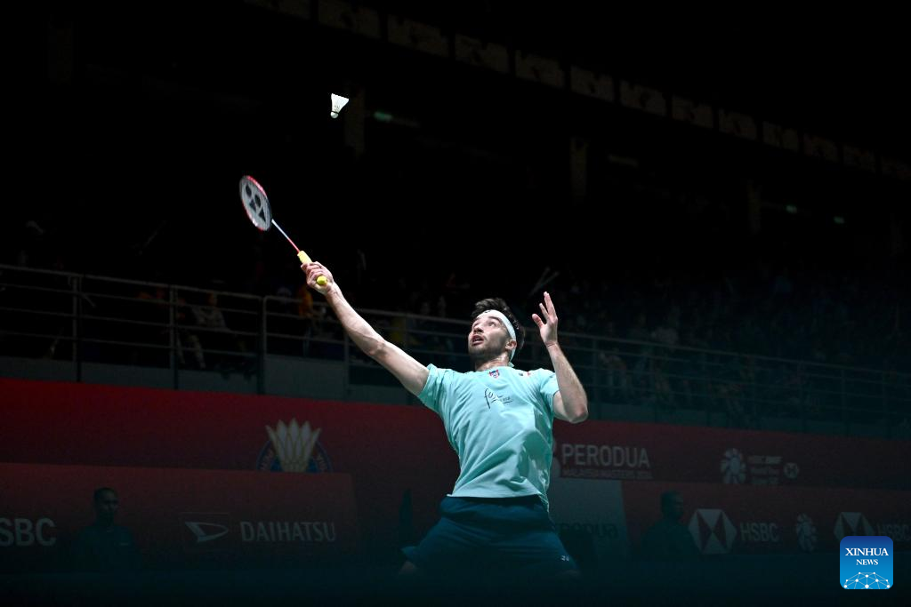 Toma Junior Popov of France hits a return during the men's singles round of 32 match against Li Shifeng of China at Malaysia Masters 2024 in Kuala Lumpur, Malaysia, May 22, 2024. (Photo by Chong Voon Chung/Xinhua)
