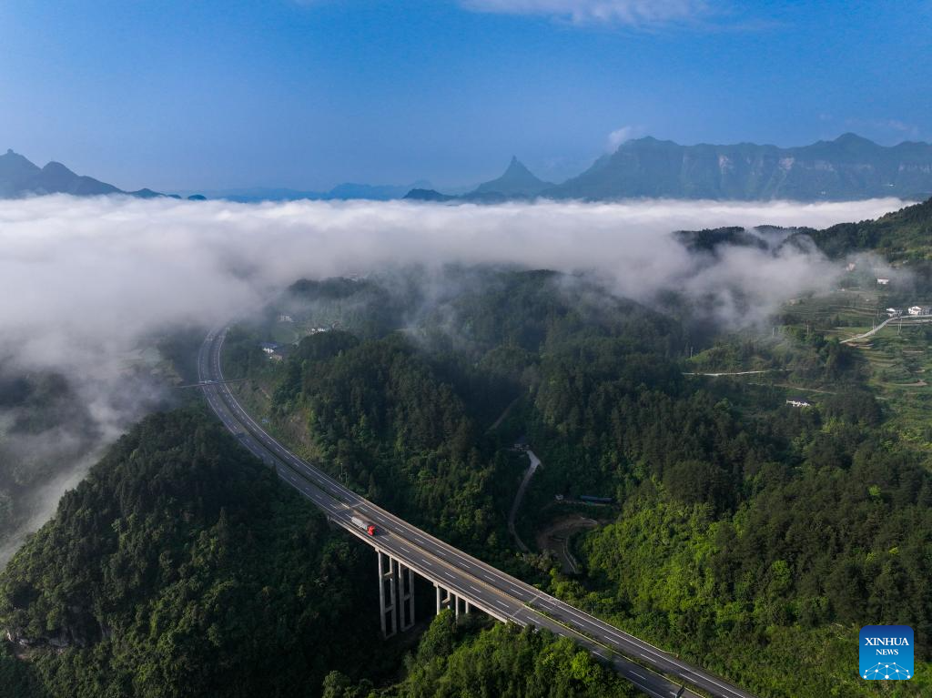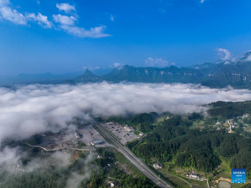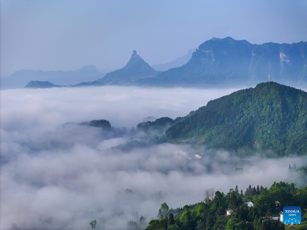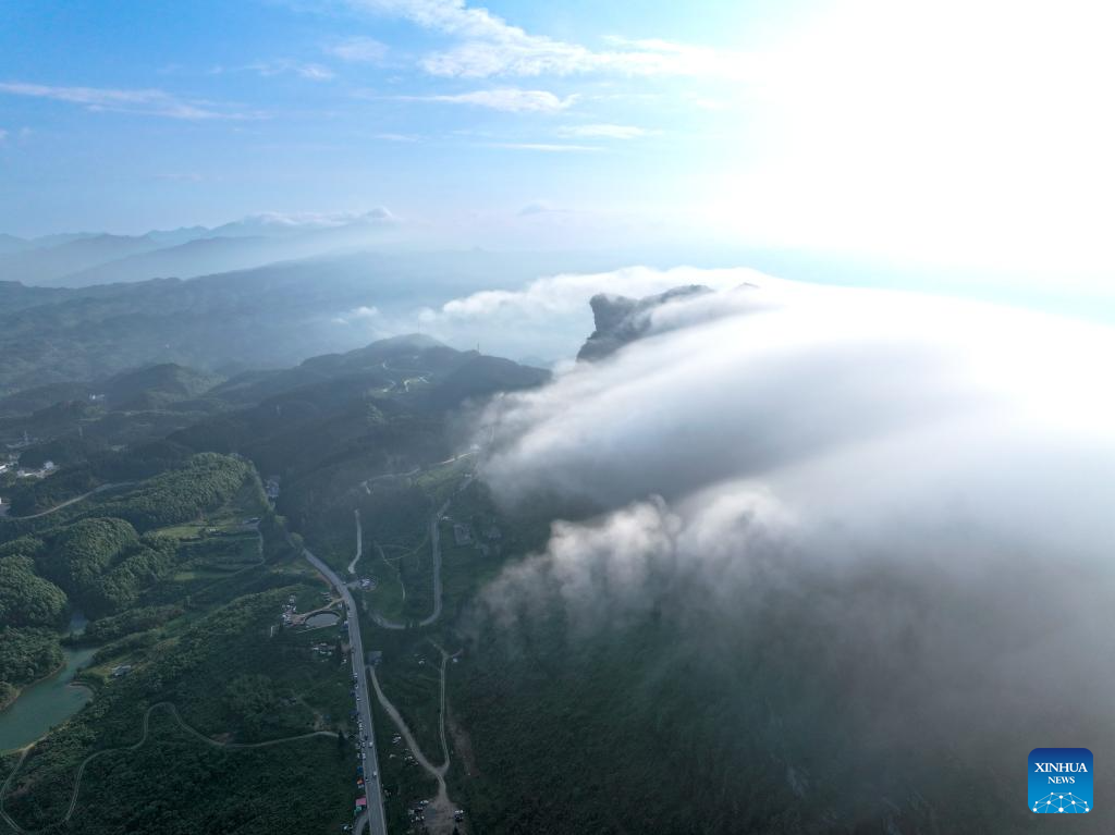 An aerial drone photo taken on May 23, 2024 shows a sea of clouds at the Jinfo Mountain in Nanchuan District, southwest China's Chongqing Municipality. (Xinhua/Liu Chan)