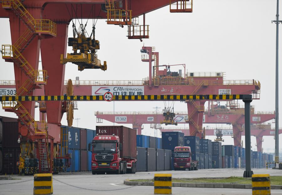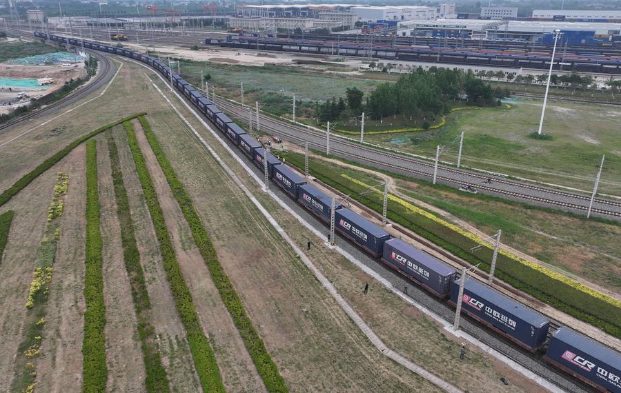 An aerial drone photo taken on May 25, 2024 shows Xi'an international port station in Xi'an, the capital city of northwest China's Shaanxi Province. (Xinhua/Zhang Bowen)An aerial drone photo taken on May 25, 2024 shows Xi'an international port station in Xi'an, the capital city of northwest China's Shaanxi Province. (Xinhua/Zhang Bowen)Trucks transport containers at Xi'an international port station in Xi'an, the capital city of northwest China's Shaanxi Province, May 25, 2024. (Xinhua/Zhang Bowen)Freight train X8157, which is bound for Malaszewicze, Poland, departs from Xi'an, the capital city of northwest China's Shaanxi Province, on May 25, 2024. (Xinhua/Zhang Bowen)An aerial drone photo taken on May 25, 2024 shows Xi'an international port station in Xi'an, the capital city of northwest China's Shaanxi Province. (Xinhua/Zhang Bowen)An aerial drone photo taken on May 25, 2024 shows freight train X8157, which is bound for Malaszewicze, Poland, departing from Xi'an, the capital city of northwest China's Shaanxi Province. (Xinhua/Zhang Bowen)An aerial drone photo taken on May 25, 2024 shows freight train X8157, which is bound for Malaszewicze, Poland, departing from Xi'an, the capital city of northwest China's Shaanxi Province. (Xinhua/Zhang Bowen)■