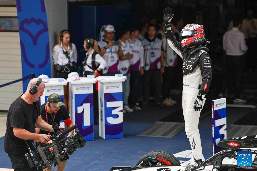 Jaguar TCS Racing's driver Nick Cassidy (Bottom) of New Zealand competes during the FIA Formula E World Championship Shanghai E-Prix race in east China's Shanghai, May 25, 2024. (Photo by Qian Jun/Xinhua)