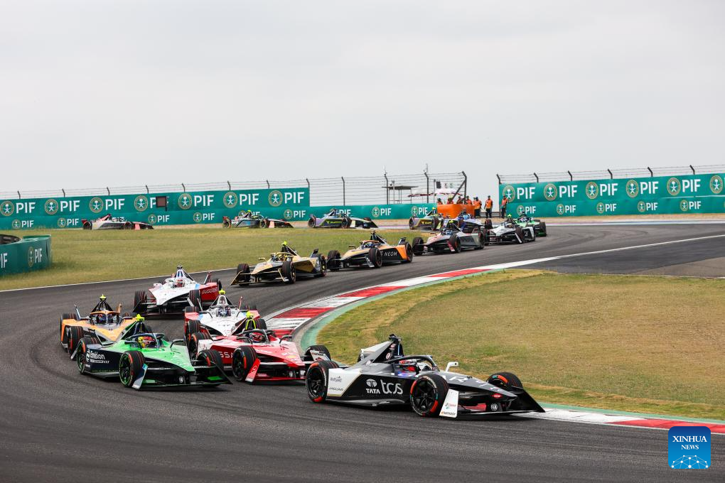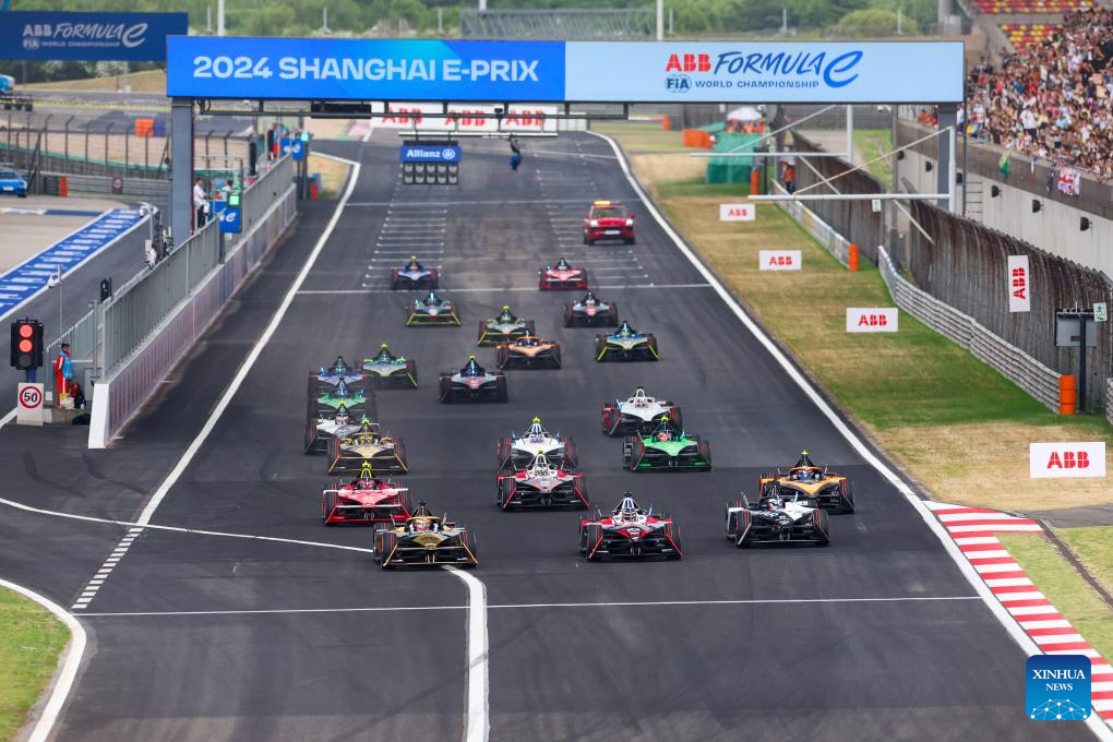 Racers start during the FIA Formula E World Championship Shanghai E-Prix race in east China's Shanghai, May 25, 2024. (Photo by Qian Jun/Xinhua)