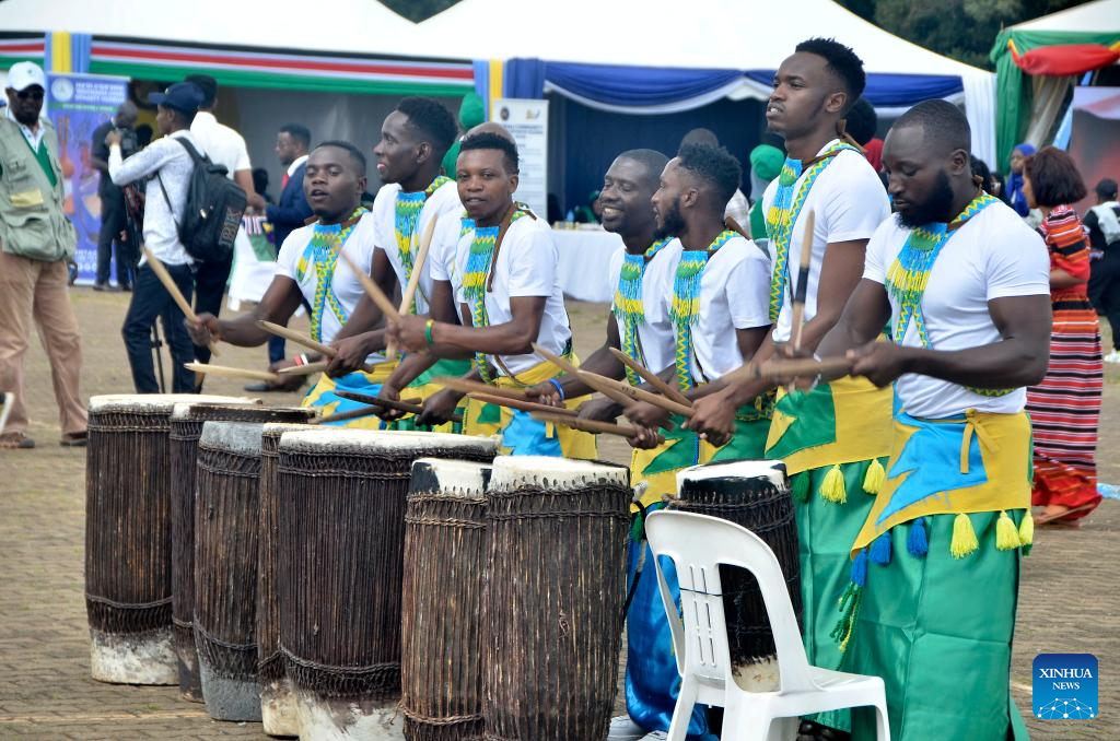 People from Rwanda play traditional instruments during an Africa Day celebration event in Kampala, Uganda, May 25, 2024. (Photo by Nicholas Kajoba/Xinhua)
