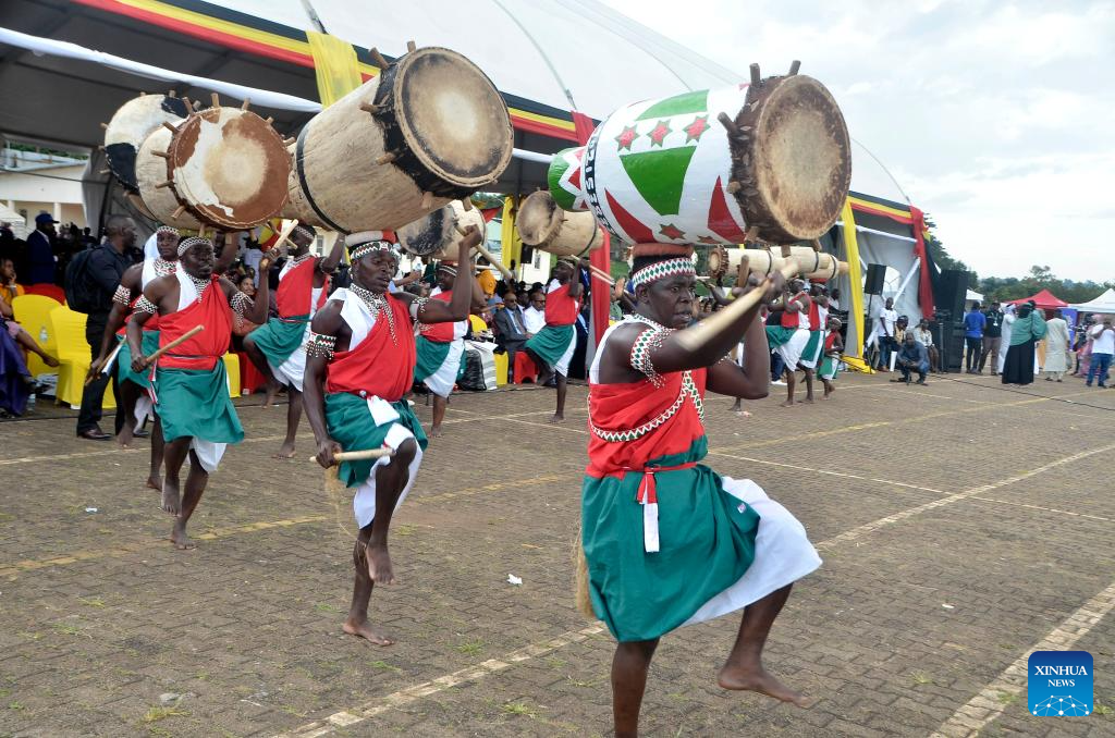 People from Burundi play drums during an Africa Day celebration event in Kampala, Uganda, May 25, 2024. (Photo by Nicholas Kajoba/Xinhua)