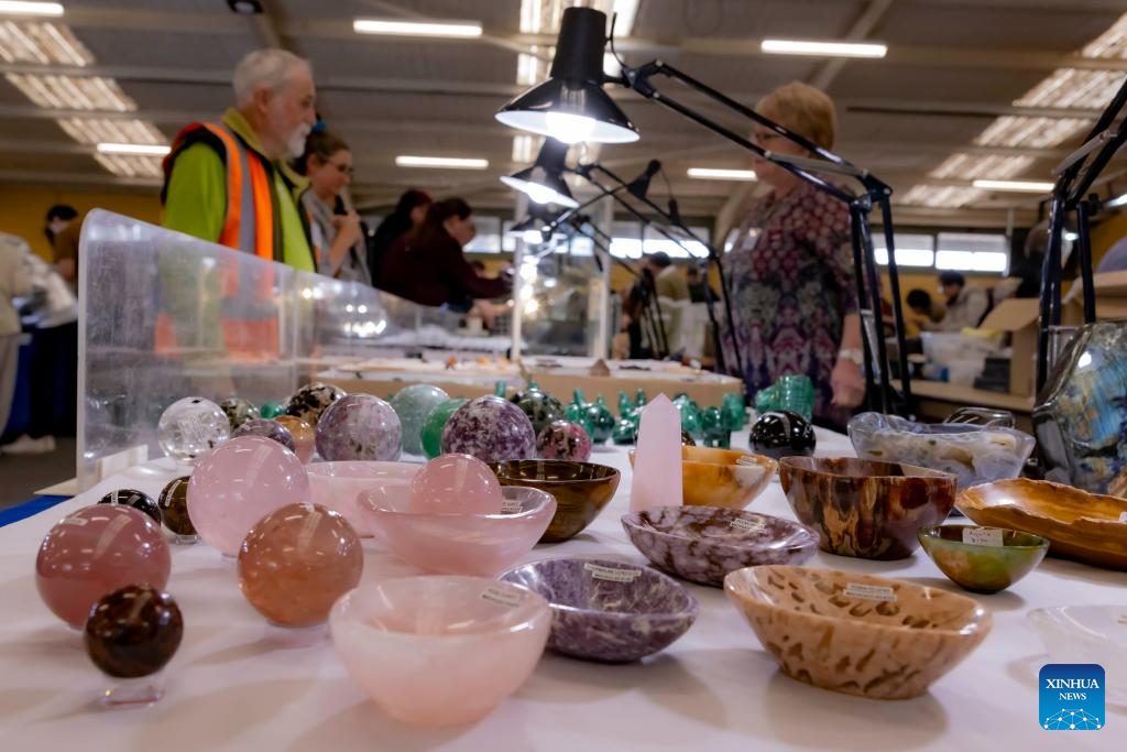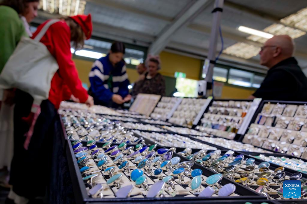 People visit the 2024 Canberra Winter Gemcraft and Mineral Show at the Exhibition Park in Canberra, Australia, May 25, 2024. (Photo by Chu Chen/Xinhua)