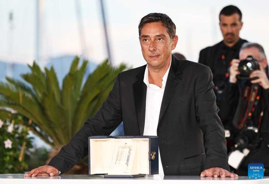 Portuguese director Miguel Gomes poses after he won the Best Director prize for the film "Grand Tour" during the Closing Ceremony at the 77th edition of the Cannes Film Festival in Cannes, southern France, on May 25, 2024. (Xinhua/Gao Jing)