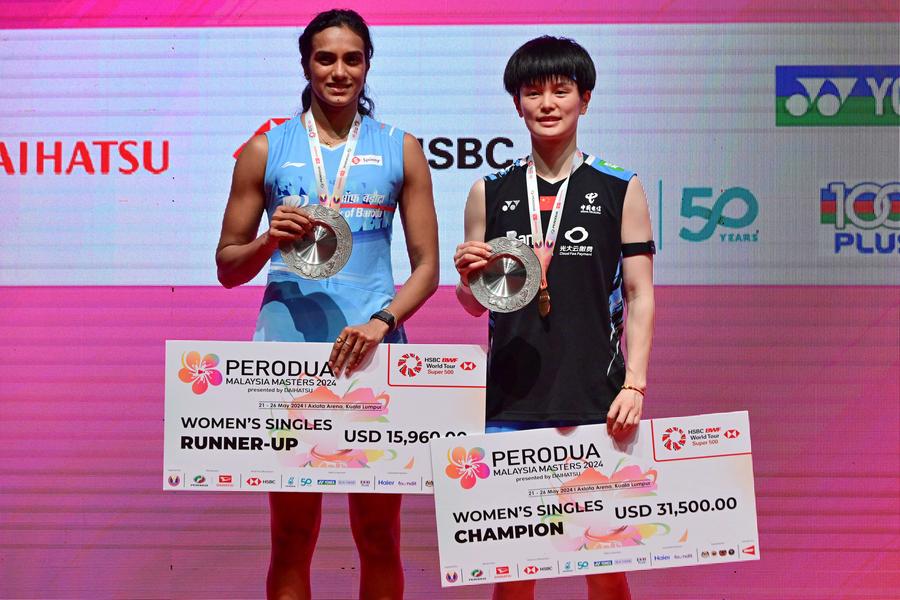 Wang Zhiyi (R) of China and Venkata Sindhu Pusarla of India pose for photos during the awarding ceremony after the women's singles final match between Wang Zhiyi of China and Venkata Sindhu Pusarla of India at Malaysia Masters 2024 in Kuala Lumpur, Malaysia, May. 26, 2024. (Photo by Chong Voon Chung/Xinhua)Wang Zhiyi of China celebrates after winning the women's singles final match between Wang Zhiyi of China and Venkata Sindhu Pusarla of India at Malaysia Masters 2024 in Kuala Lumpur, Malaysia, May. 26, 2024. (Photo by Chong Voon Chung/Xinhua)Wang Zhiyi of China hits a return during the women's singles final match between Wang Zhiyi of China and Venkata Sindhu Pusarla of India at Malaysia Masters 2024 in Kuala Lumpur, Malaysia, May. 26, 2024. (Photo by Chong Voon Chung/Xinhua)Wang Zhiyi of China hits a return during the women's singles final match between Wang Zhiyi of China and Venkata Sindhu Pusarla of India at Malaysia Masters 2024 in Kuala Lumpur, Malaysia, May. 26, 2024. (Photo by Chong Voon Chung/Xinhua)Wang Zhiyi of China hits a return during the women's singles final match between Wang Zhiyi of China and Venkata Sindhu Pusarla of India at Malaysia Masters 2024 in Kuala Lumpur, Malaysia, May. 26, 2024. (Photo by Chong Voon Chung/Xinhua)Wang Zhiyi of China celebrates after winning the women's singles final match between Wang Zhiyi of China and Venkata Sindhu Pusarla of India at Malaysia Masters 2024 in Kuala Lumpur, Malaysia, May. 26, 2024. (Photo by Chong Voon Chung/Xinhua)Wang Zhiyi of China hits a return during the women's singles final match between Wang Zhiyi of China and Venkata Sindhu Pusarla of India at Malaysia Masters 2024 in Kuala Lumpur, Malaysia, May. 26, 2024. (Photo by Chong Voon Chung/Xinhua)Wang Zhiyi of China hits a return during the women's singles final match between Wang Zhiyi of China and Venkata Sindhu Pusarla of India at Malaysia Masters 2024 in Kuala Lumpur, Malaysia, May. 26, 2024. (Photo by Chong Voon Chung/Xinhua)Wang Zhiyi of China hits a return during the women's singles final match between Wang Zhiyi of China and Venkata Sindhu Pusarla of India at Malaysia Masters 2024 in Kuala Lumpur, Malaysia, May. 26, 2024. (Photo by Chong Voon Chung/Xinhua)Wang Zhiyi of China celebrates during the women's singles final match between Wang Zhiyi of China and Venkata Sindhu Pusarla of India at Malaysia Masters 2024 in Kuala Lumpur, Malaysia, May. 26, 2024. (Photo by Chong Voon Chung/Xinhua)Venkata Sindhu Pusarla of India hits a return during the women's singles final match between Wang Zhiyi of China and Venkata Sindhu Pusarla of India at Malaysia Masters 2024 in Kuala Lumpur, Malaysia, May. 26, 2024. (Photo by Chong Voon Chung/Xinhua)Wang Zhiyi of China poses for photos during the awarding ceremony after the women's singles final match between Wang Zhiyi of China and Venkata Sindhu Pusarla of India at Malaysia Masters 2024 in Kuala Lumpur, Malaysia, May. 26, 2024. (Photo by Chong Voon Chung/Xinhua)■