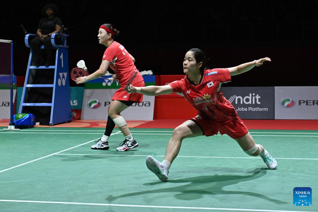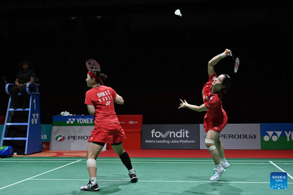 Lee Yu Lim (L)/Shin Seung Chan of South Korea compete during the women's doubles final match against Iwanaga Rin/Nakanishi Kie of Japan at Malaysia Masters 2024 in Kuala Lumpur, Malaysia, May 26, 2024. (Photo by Chong Voon Chung/Xinhua)
