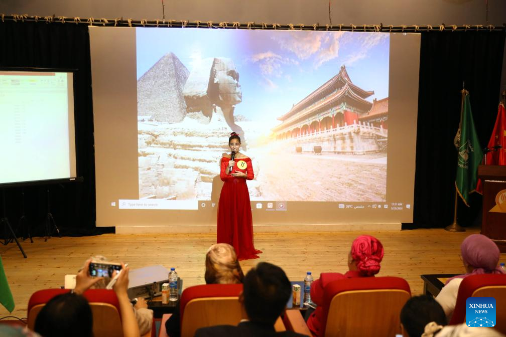 CAIRO, May 26 (Xinhua) -- At the theater of Confucius Institute for Chinese learning at Cairo University, students representing 13 Egyptian schools nationwide presented a fascinating performance during the "Chinese Bridge" contest in Chinese language proficiency.