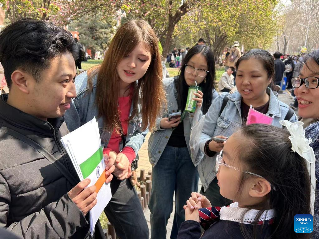 Sofiia Balunova (2nd L) attends an open day event as a volunteer at Tianjin University in north China's Tianjin in April 2024. (Xinhua)