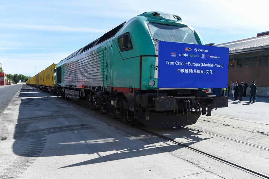 The freight trains between the eastern Chinese city of Yiwu and the Spanish capital of Madrid have played a very important role in promoting commercial exchanges.