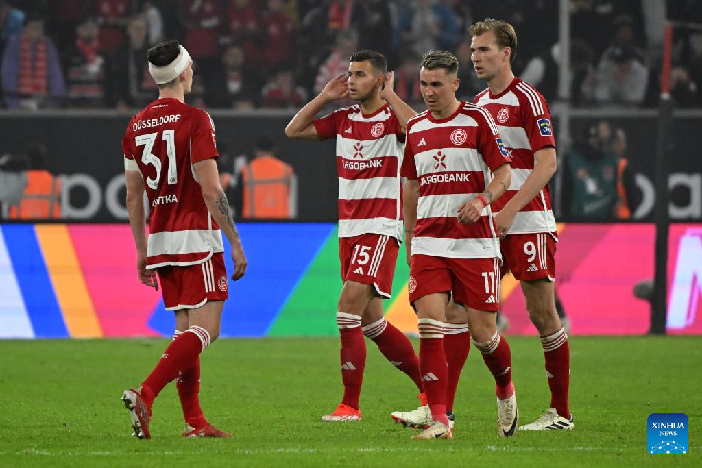 Players of Fortuna Dusseldorf react during the second leg match of Bundesliga relegation/promotion play-off between Fortuna Dusseldorf and VfL Bochum 1848 in Dusseldorf, Germany, May 27, 2024. (Photo by Ulrich Hufnagel/Xinhua)