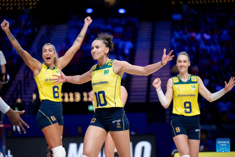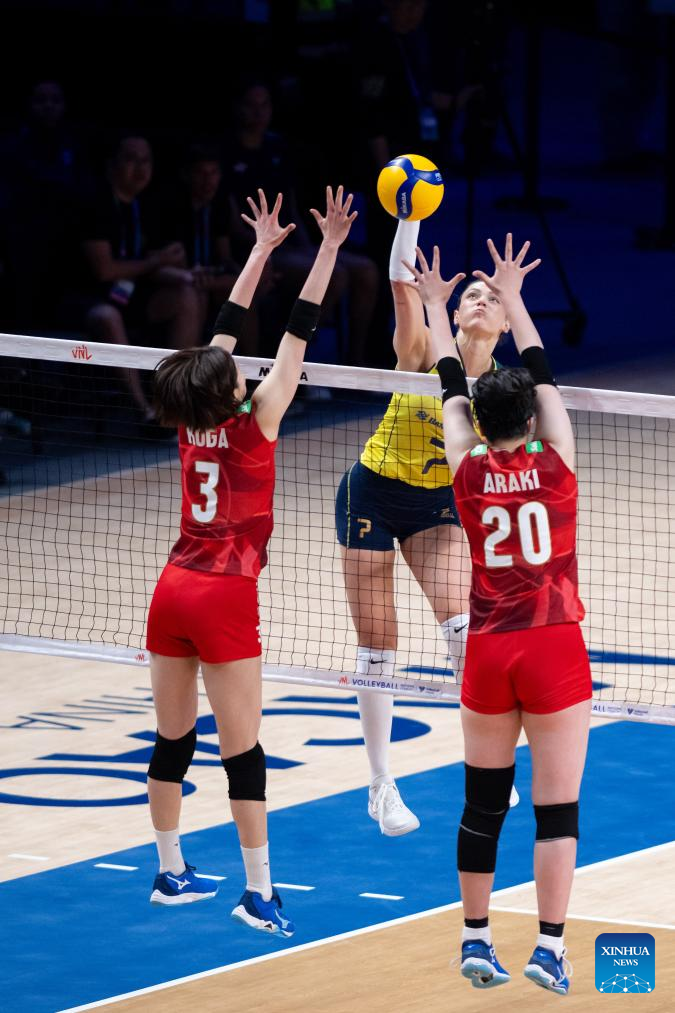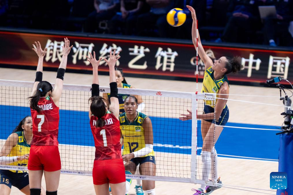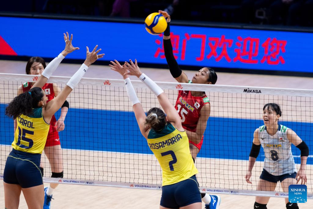 MACAO, May 28 (Xinhua) -- Brazil extended its winning streak in FIVB Women's Volleyball Nations League (VNL), narrowly beating Japan 24-26, 26-24, 19-25, 25-20, 15-11 here on Tuesday.