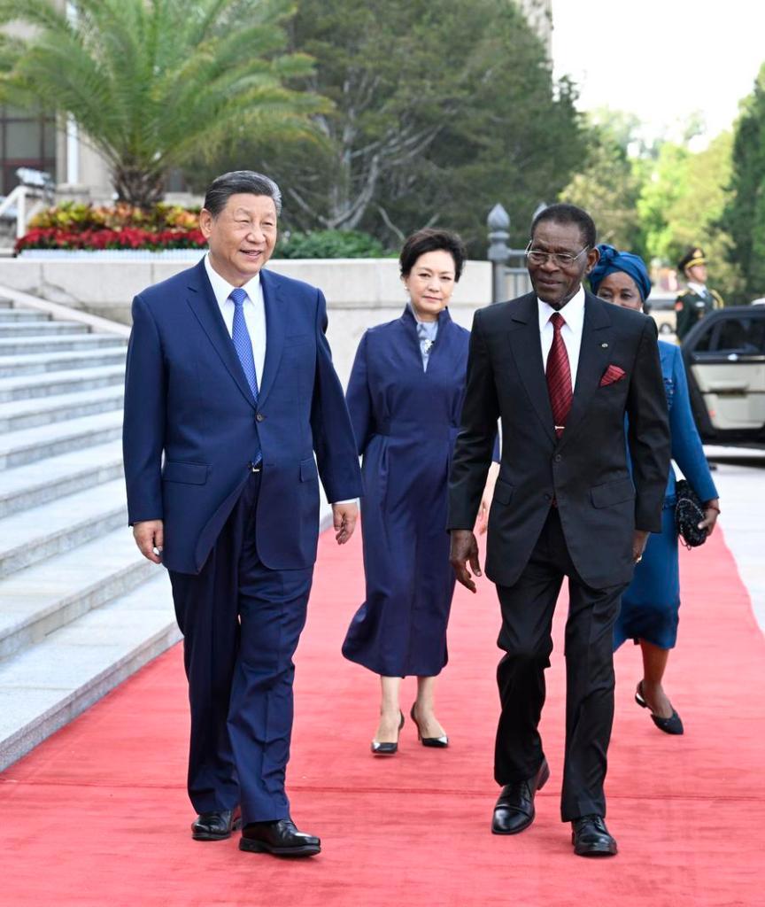 Chinese President Xi Jinping holds a welcome ceremony for Teodoro Obiang Nguema Mbasogo, president of the Republic of Equatorial Guinea, at the square outside the east gate of the Great Hall of the People before their talks in Beijing, capital of China, May 28, 2024. Xi held talks with Obiang, who is in China on a state visit, at the Great Hall of the People on Tuesday. (Xinhua/Yao Dawei)Chinese President Xi Jinping and his wife Peng Liyuan pose for a group photo with Teodoro Obiang Nguema Mbasogo, president of the Republic of Equatorial Guinea, and his wife Constancia Mangue de Obiang, prior to the talks between Xi and Obiang in Beijing, capital of China, May 28, 2024. Xi held talks with Obiang, who is in China on a state visit, at the Great Hall of the People on Tuesday. (Xinhua/Li Xueren)Chinese President Xi Jinping and his wife Peng Liyuan hold a welcome ceremony for Teodoro Obiang Nguema Mbasogo, president of the Republic of Equatorial Guinea, and his wife Constancia Mangue de Obiang, at the square outside the east gate of the Great Hall of the People prior to the talks between Xi and Obiang in Beijing, capital of China, May 28, 2024. Xi held talks with Obiang, who is in China on a state visit, at the Great Hall of the People on Tuesday. (Xinhua/Li Xueren)Chinese President Xi Jinping holds a welcome ceremony for Teodoro Obiang Nguema Mbasogo, president of the Republic of Equatorial Guinea, at the square outside the east gate of the Great Hall of the People before their talks in Beijing, capital of China, May 28, 2024. Xi held talks with Obiang, who is in China on a state visit, at the Great Hall of the People on Tuesday. (Xinhua/Zhang Ling)Chinese President Xi Jinping holds a welcome ceremony for Teodoro Obiang Nguema Mbasogo, president of the Republic of Equatorial Guinea, at the square outside the east gate of the Great Hall of the People before their talks in Beijing, capital of China, May 28, 2024. Xi held talks with Obiang, who is in China on a state visit, at the Great Hall of the People on Tuesday. (Xinhua/Yin Bogu)Chinese President Xi Jinping holds a welcome ceremony for Teodoro Obiang Nguema Mbasogo, president of the Republic of Equatorial Guinea, at the square outside the east gate of the Great Hall of the People before their talks in Beijing, capital of China, May 28, 2024. Xi held talks with Obiang, who is in China on a state visit, at the Great Hall of the People on Tuesday. (Xinhua/Li Xueren)Chinese President Xi Jinping holds talks with Equatorial Guinean President Teodoro Obiang Nguema Mbasogo, who is in China on a state visit, at the Great Hall of the People in Beijing, capital of China, May 28, 2024. (Xinhua/Zhang Ling)Chinese President Xi Jinping shakes hands with Teodoro Obiang Nguema Mbasogo, president of the Republic of Equatorial Guinea, at the Great Hall of the People in Beijing, capital of China, May 28, 2024. Xi held talks with Obiang, who is in China on a state visit, at the Great Hall of the People on Tuesday. After their talks, the two heads of state witnessed the signing of bilateral cooperation documents. (Xinhua/Yao Dawei)