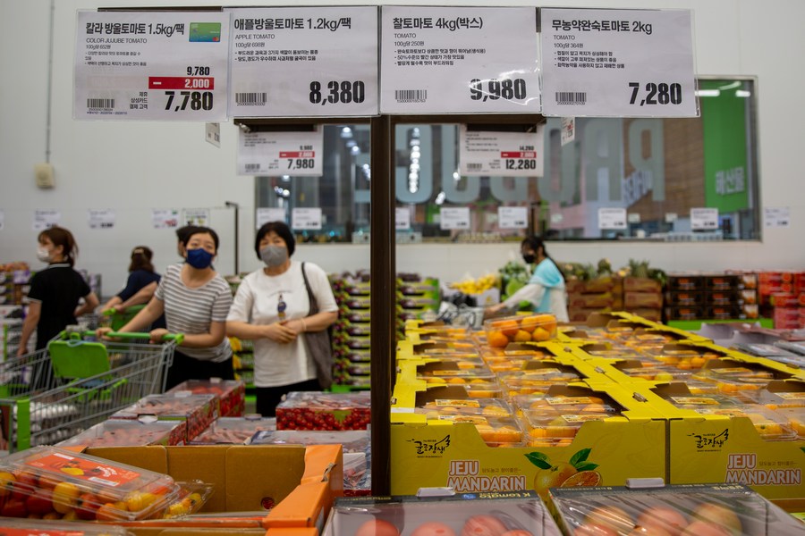 People shop at a supermarket in Goyang, South Korea, July 9, 2022. (Xinhua/Wang Yiliang)