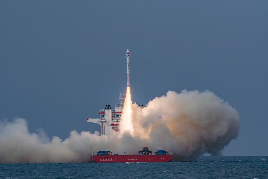 The launch vehicle, a sea-borne variant of commercial rocket CERES-1, blasted off at 4:12 p.m. (Beijing Time). The Taiyuan Satellite Launch Center conducted this offshore mission.