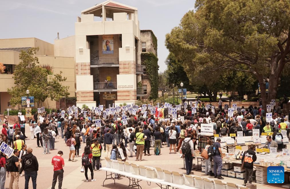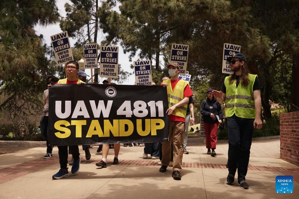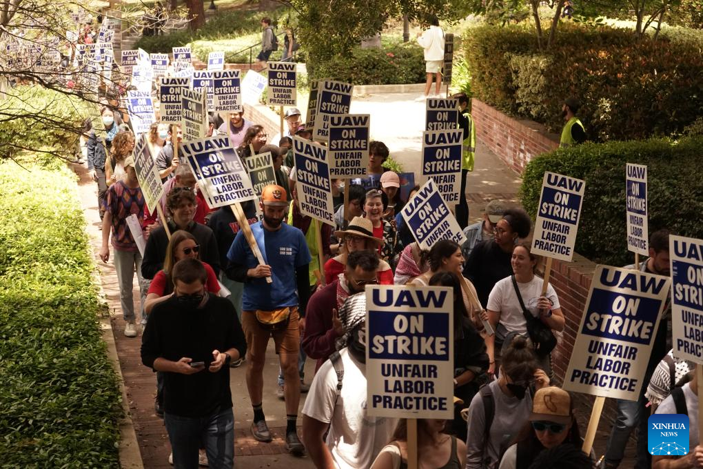 LOS ANGELES, May 28 (Xinhua) -- Academic workers at the University of California (UC), Los Angeles, in the U.S. state of California, walked off the job on Tuesday to protest the public university system's handling of pro-Palestinian protests.