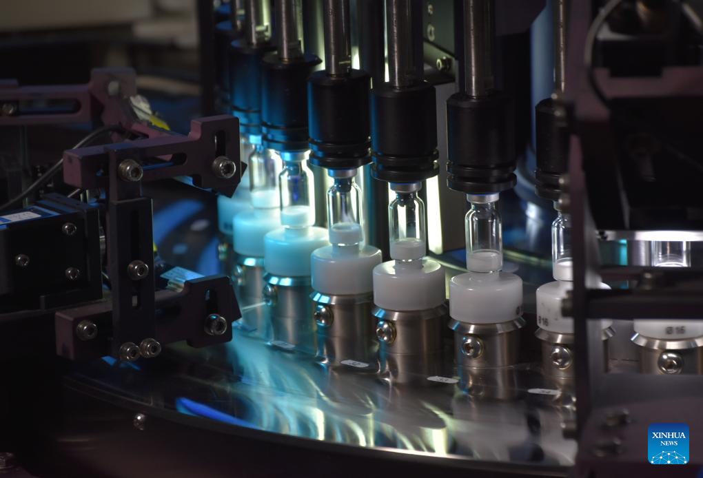 This undated file photo shows an automatic lamp inspection machine inspecting lyophilized preparation at Liaoning Chengda Co., Ltd. in Shenyang, northeast China's Liaoning Province. In recent years, Shenyang has created an environment to better develop biomedicine and medical equipment industries, laying a foundation to form medical industrial clusters.