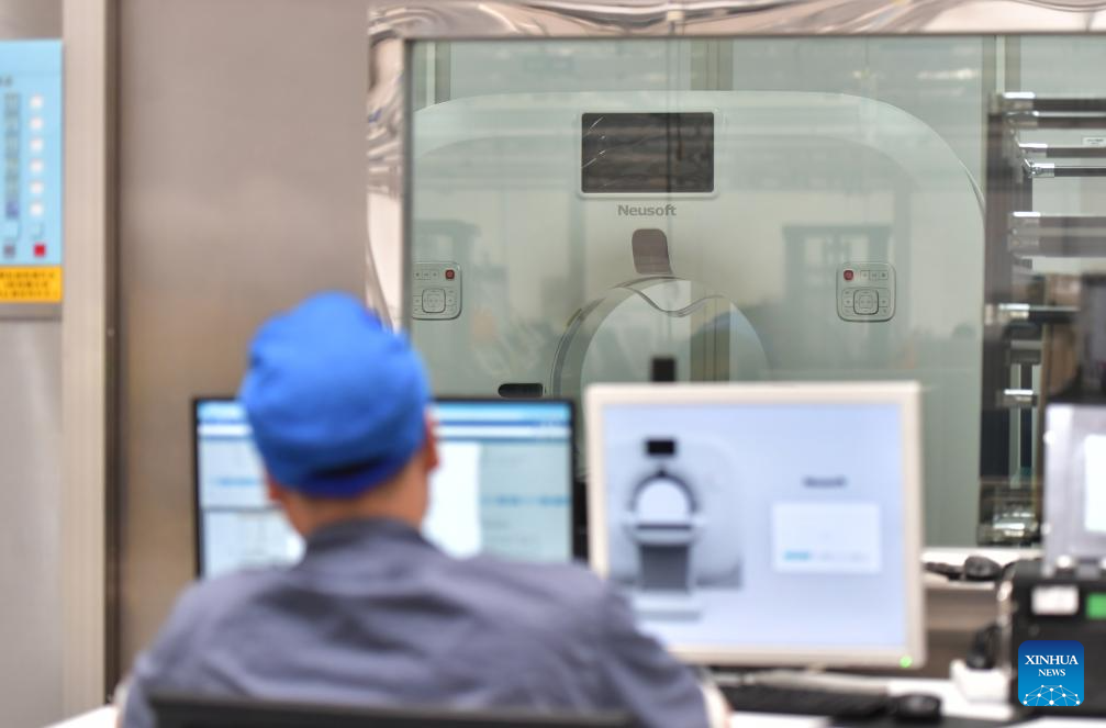 A worker checks a CT machine at Neusoft Medical in Shenyang, northeast China's Liaoning Province, May 22, 2024. In recent years, Shenyang has created an environment to better develop biomedicine and medical equipment industries, laying a foundation to form medical industrial clusters.