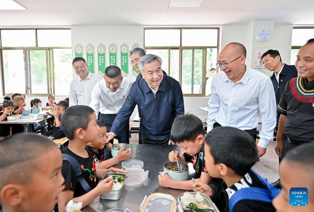 Li Xi, a member of the Standing Committee of the Political Bureau of the Communist Party of China (CPC) Central Committee and secretary of the CPC Central Commission for Discipline Inspection, visits a rural school in Mabian Yi Autonomous County of Leshan City, southwest China's Sichuan Province, May 30, 2024. Li made an investigation and research tour in southwest China's Sichuan Province that began on Wednesday and concluded on Saturday. (Xinhua/Yue Yuewei)