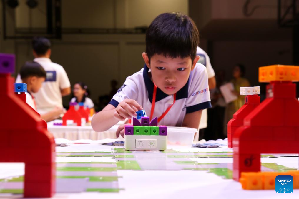 Students compete during the Myanmar Tournament of the World Robot Contest 2024 at the National Theater in Yangon, Myanmar, June 1, 2024. (Photo by Myo Kyaw Soe/Xinhua)