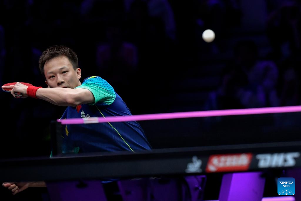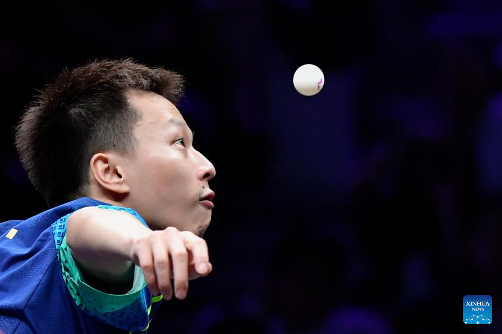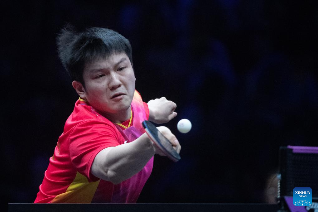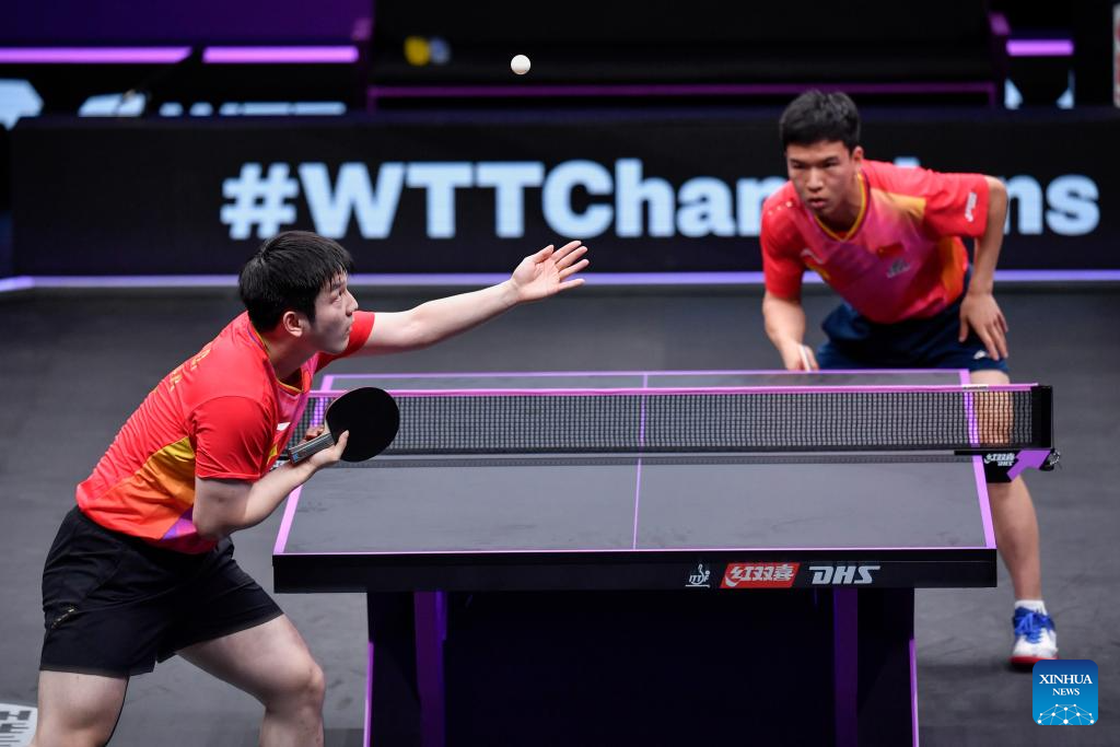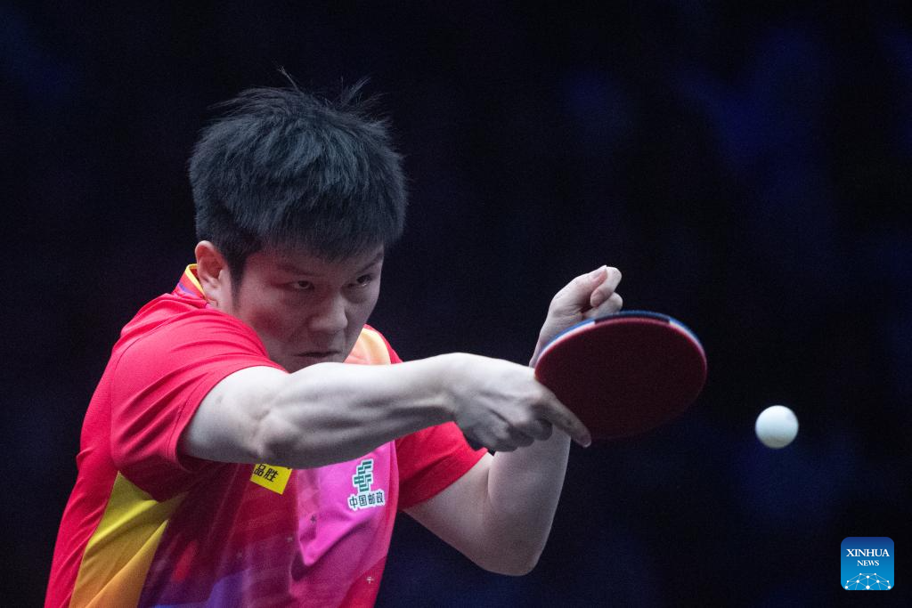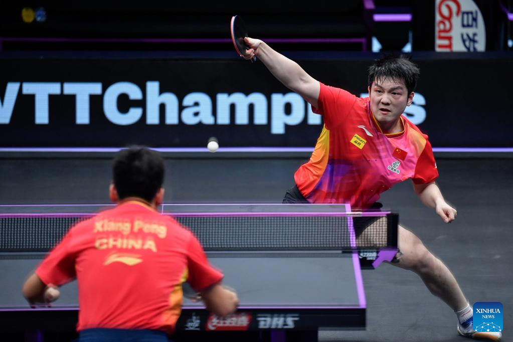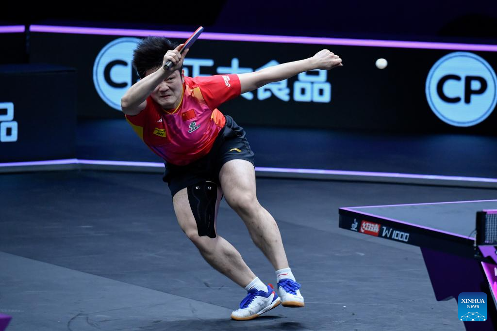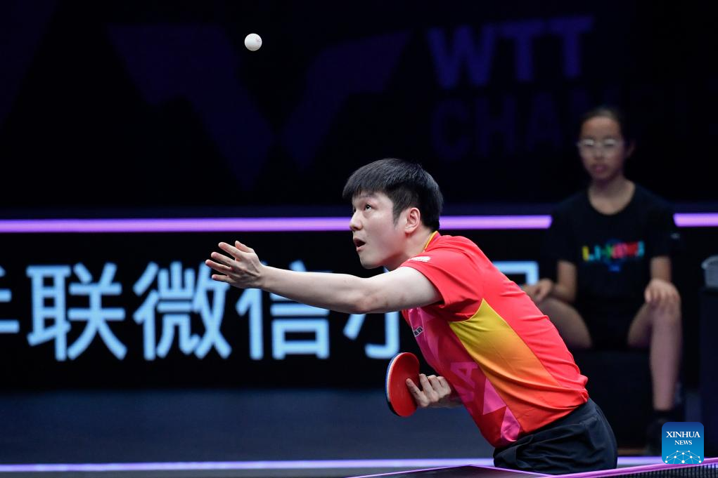 Fan Zhendong of China competes against Xiang Peng of China during the men's singles round of 16 match at the WTT Champions Chongqing 2024 in southwest China's Chongqing, June 1, 2024. (Xinhua/Tang Yi)