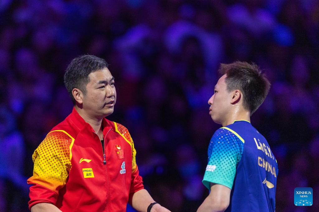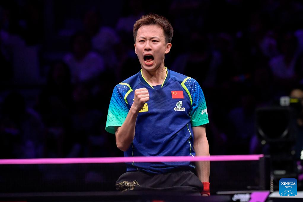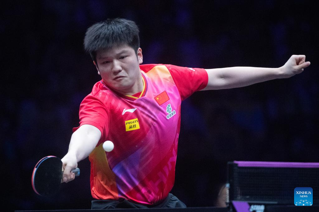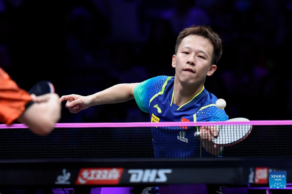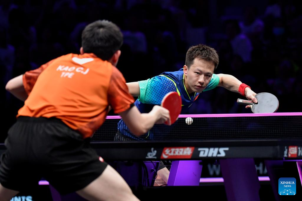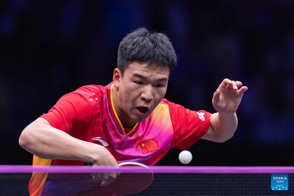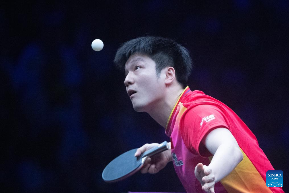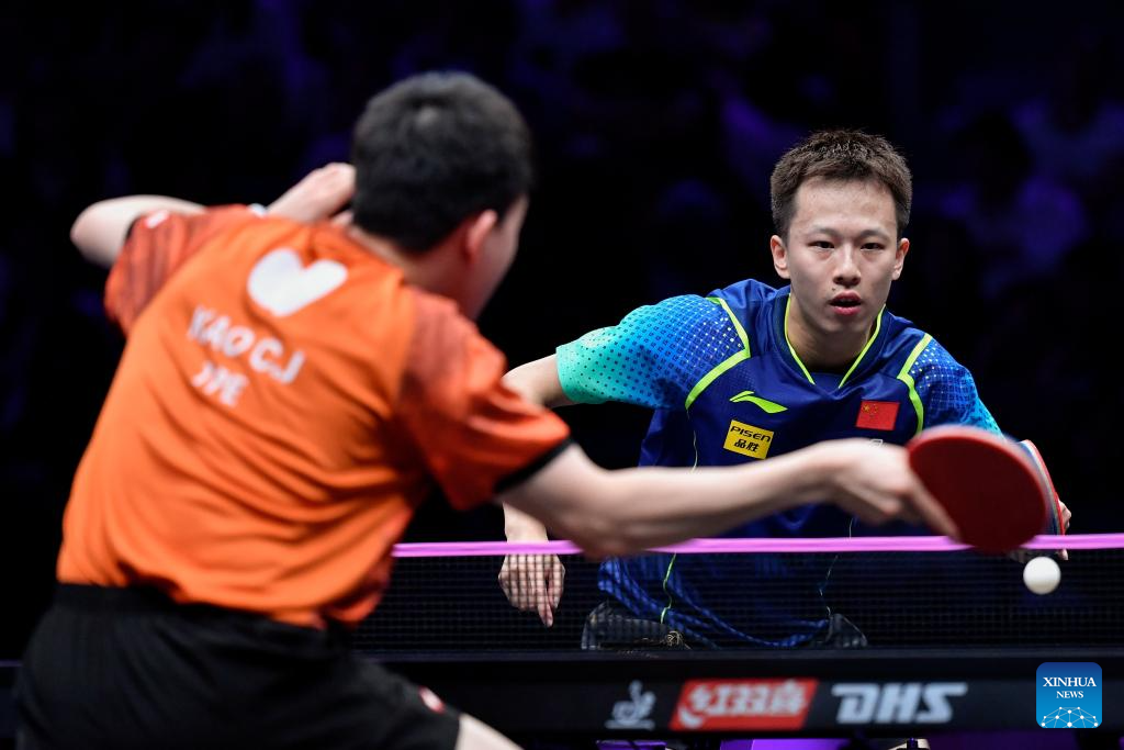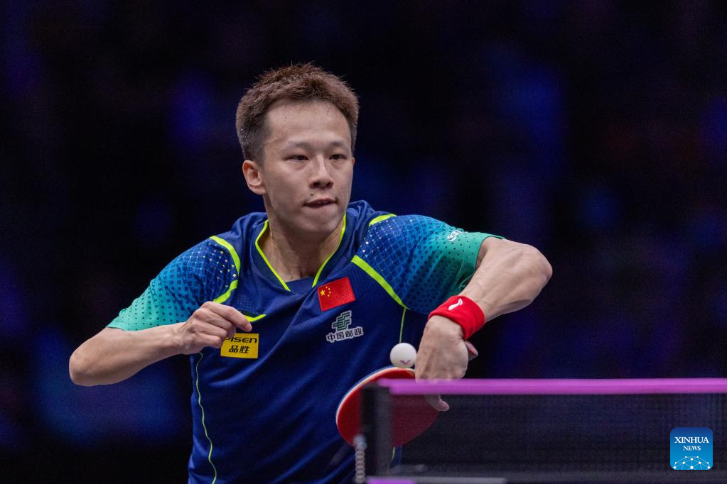 Fan Zhendong of China competes against Xiang Peng of China during the men's singles round of 16 match at the WTT Champions Chongqing 2024 in southwest China's Chongqing, June 1, 2024. (Xinhua/Tang Yi)