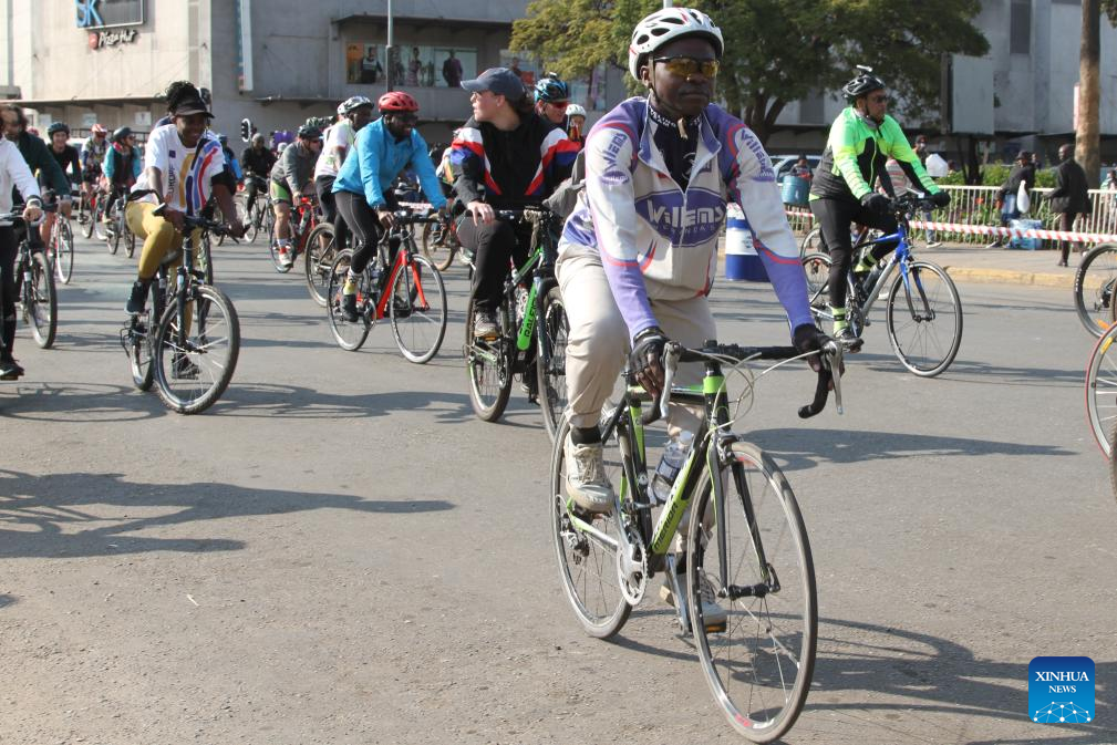 People ride bicycles during a cycling event in Harare, Zimbabwe, June 1, 2024. (Photo by Tafara Mugwara/Xinhua)