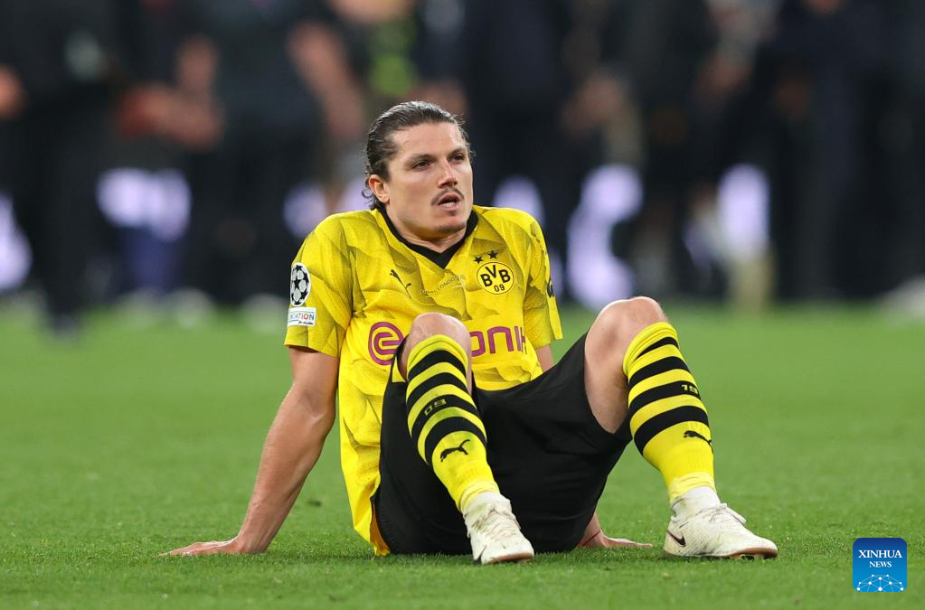 Marcel Sabitzer of Borussia Dortmund reacts after the UEFA Champions League final match between Real Madrid and Borussia Dortmund in London, Britain, June 1, 2024. (Xinhua/Str)