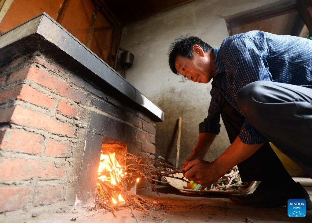 Li Dongkui cooks at home in Zhangwu County, northeast China's Liaoning Province, Aug. 3, 2013. (Xinhua/Yang Qing)