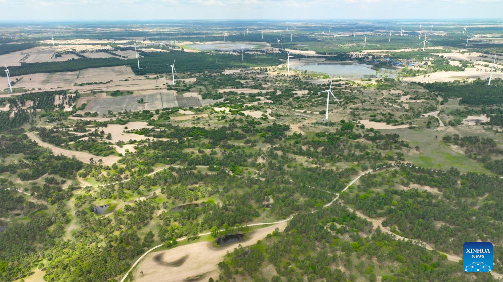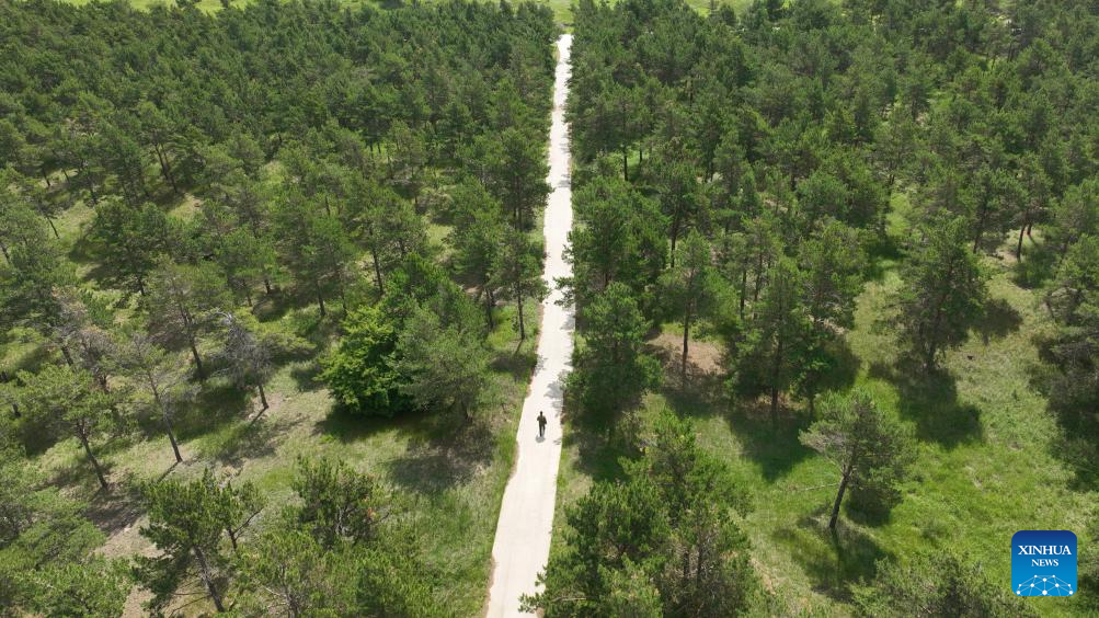 An aerial drone photo taken on May 31, 2024 shows Zhanggutai Forest Farm in Zhangwu County, northeast China's Liaoning Province. (Xinhua/Yang Qing)