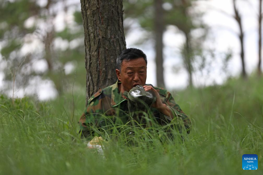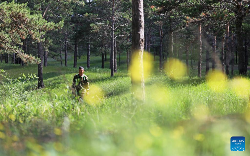 Li Dongkui partrols the forest in Zhangwu County, northeast China's Liaoning Province, May 31, 2024. (Xinhua/Yang Qing)