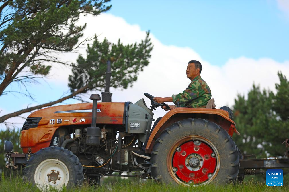 Li Dongkui drives a tractor and patrols the forest in Zhangwu County, northeast China's Liaoning Province, May 31, 2024.(Xinhua/Yang Qing)