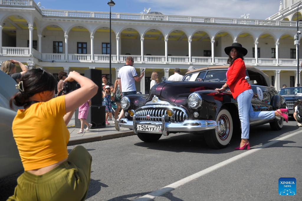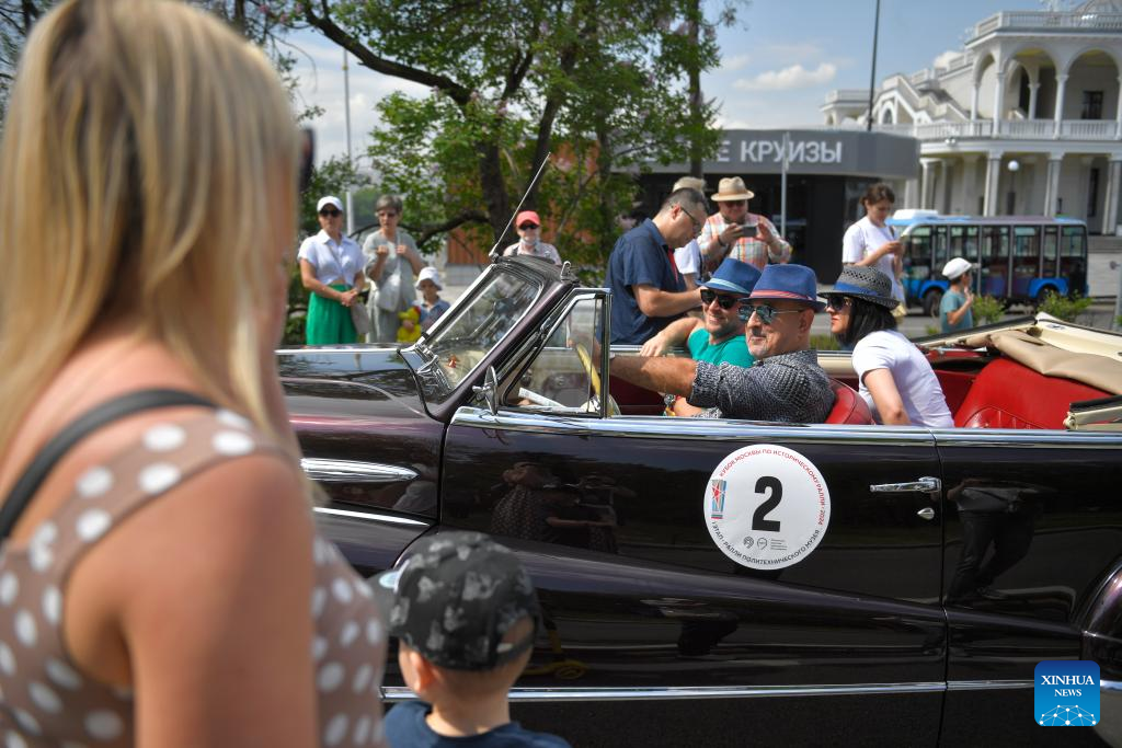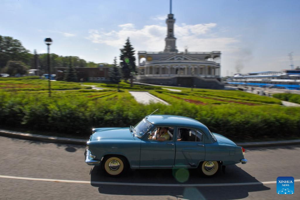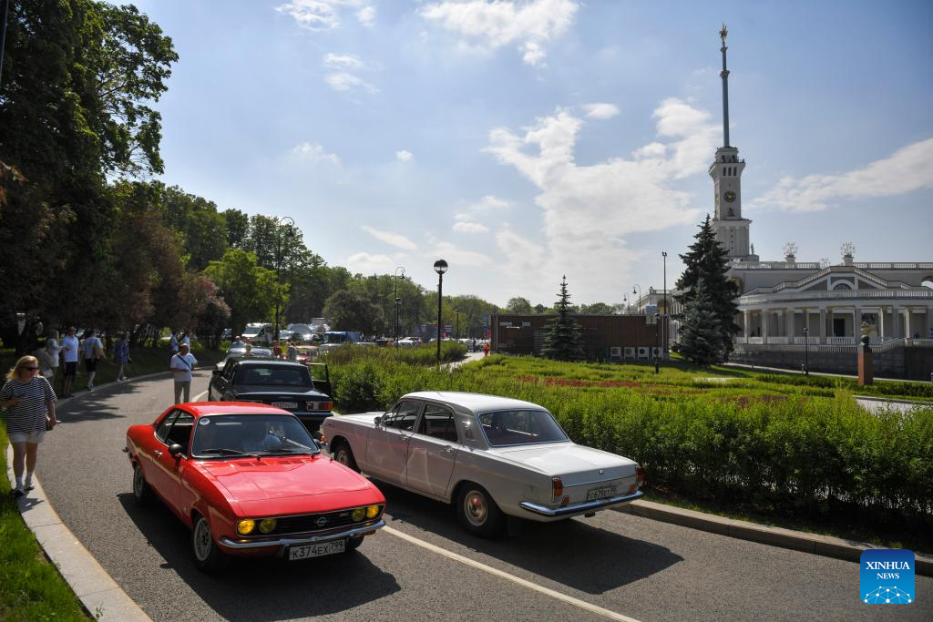 People drive to participate in a retro car rally in Moscow, Russia, on June 2, 2024. (Photo by Alexander Zemlianichenko Jr/Xinhua)