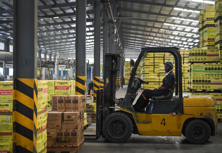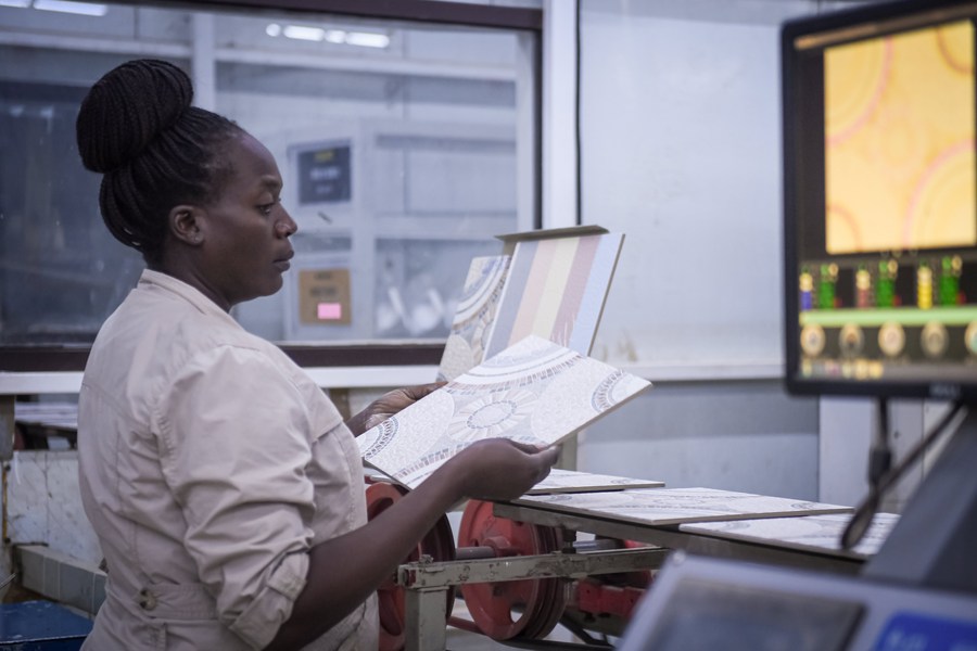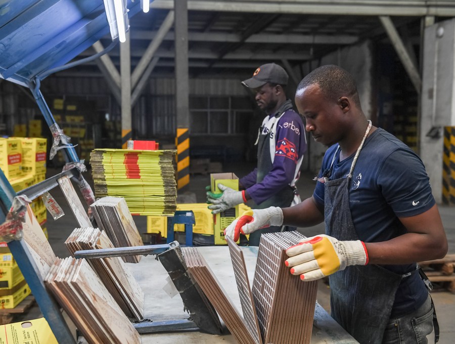 On a sunny afternoon, workers at KEDA (Kenya) Ceramics Company Limited, located about 70 kilometers south of the Kenyan capital of Nairobi, were busy with packing floor tiles in multicolored cartons for onward shipment to clients' premises.