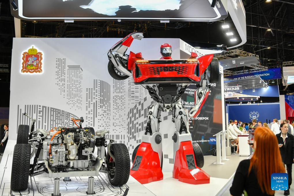 People visit an exhibition hall of the 27th St. Petersburg International Economic Forum (SPIEF) in St. Petersburg, Russia, June 5, 2024. The 27th SPIEF opened here on Wednesday with the participation of delegates from 139 countries and regions.