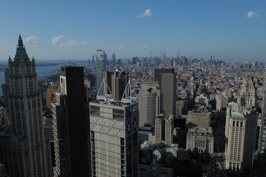 Photo taken on July 21, 2022, shows a panoramic view of Manhattan, New York City, the United States. (Photo by Emma Li/Xinhua)